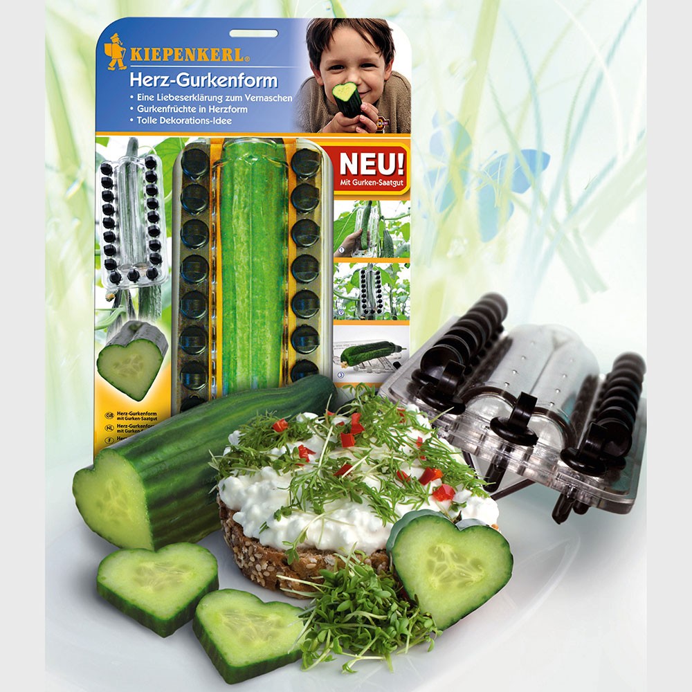 Este o idee originală. Această matriță este ideală pentru castraveții lungi a căror formă va fi în secțiune cu aspect de inimă, pachetul conține atât matrița din plastic cât și semințele.
