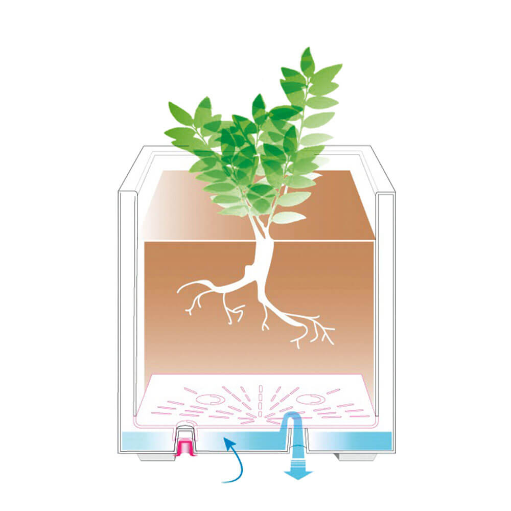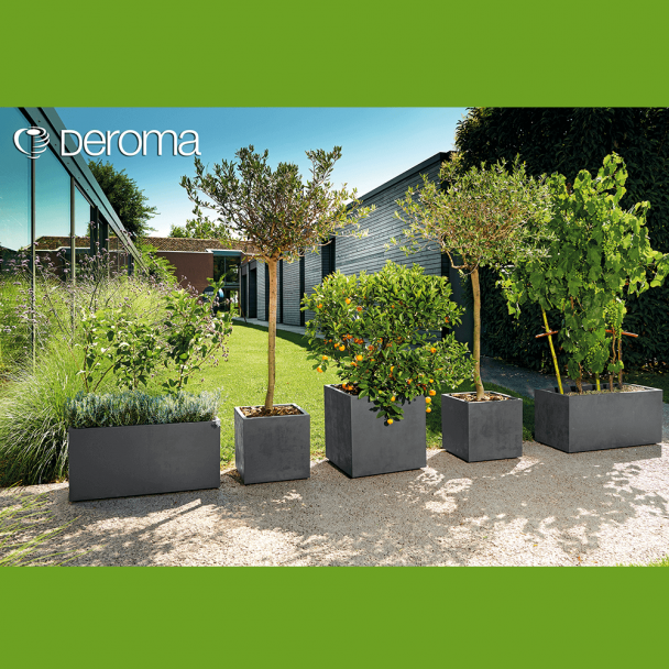 Ghiveci pentru flori Cubo Millennium prevăzut cu rezervor de apă și sistem de scurgere a apei. Culoare antracit. Dimensiuni: aprox. 39 x 39 x 39 cm.