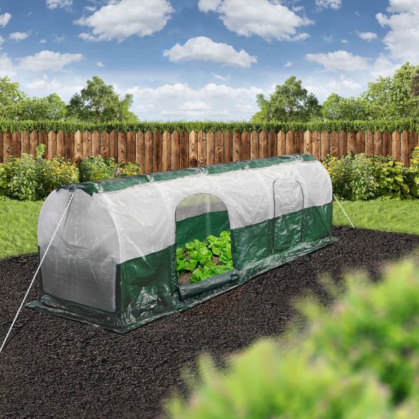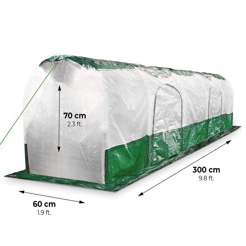Conţinutul setului: 1 buc Acest Tunel Bio Green 'Superdome' crează un climat optim dezvoltării plantelor tinere. Acest tunel nu protejează plantelel doar de ger, ninsoare, vânt sau condiții meteorologice nefavorabile, dar le protejează și de musafiri nepoftiți, precum rozătoare, melci sau dăunători, astfel cultivarea va fi mult mai ușoară. Datorită celor două zone de acces în tunel, aerisirea și udarea nu vor fi o problemă și se vor face foarte ușor. Dimensiuni: 300 x 70 x 80 cm