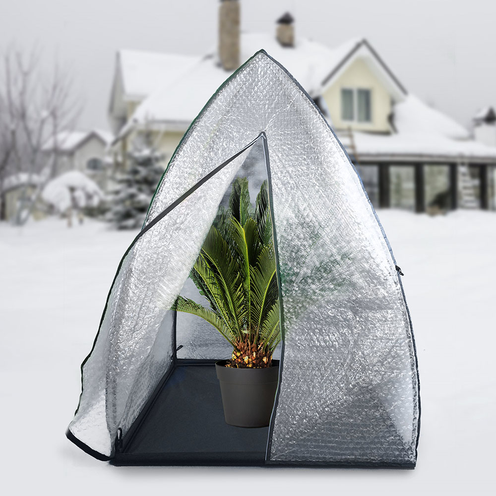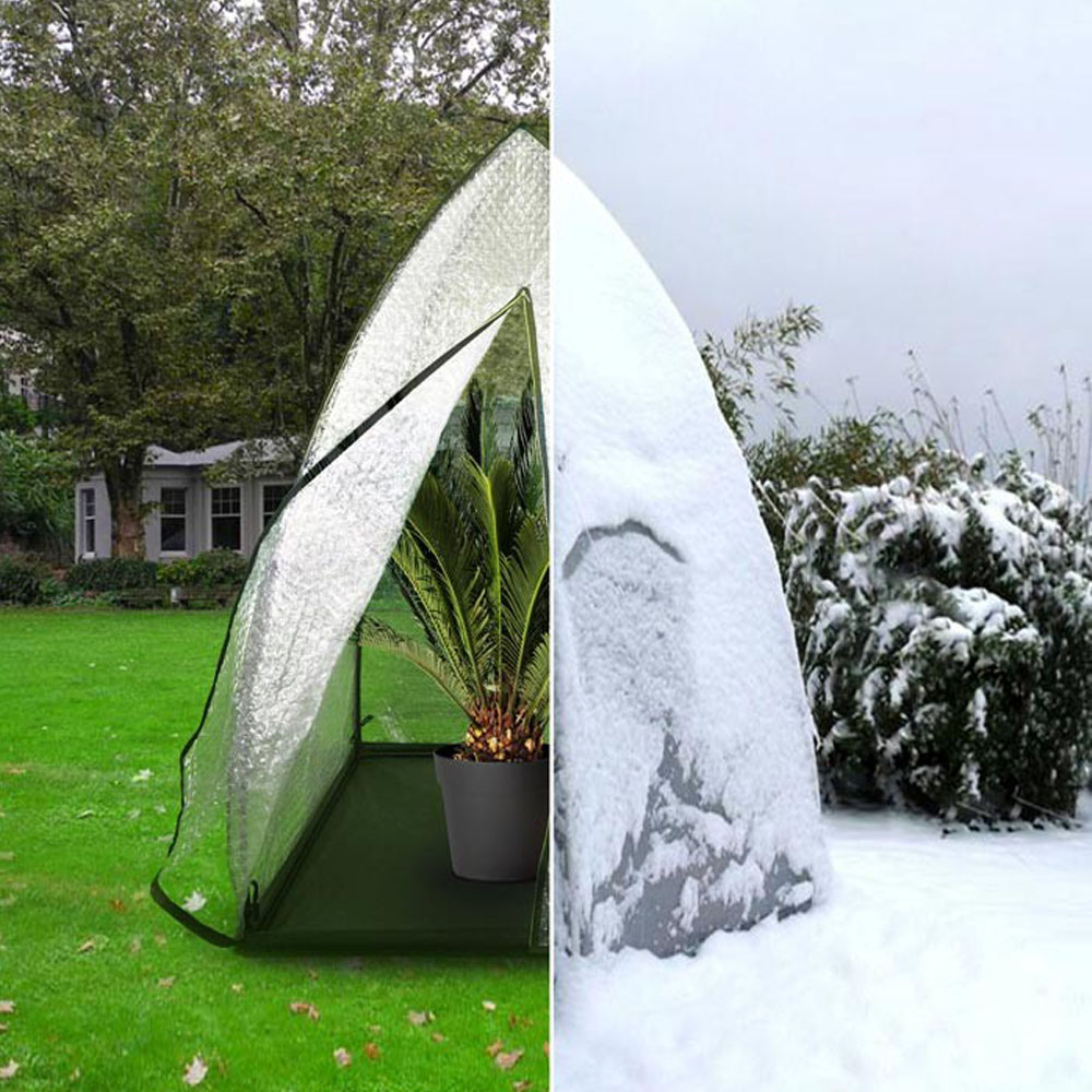 Conţinutul setului: 1 buc Plantele la ghiveci, speciale, acum pot ierna și afară. Cortul Igloo este foarte ușor de asamblat în grădină, terasă sau balcon. Are sistem de închidere cu fermoar rezistent. Materialul din care este confecționat are 3 straturi și este ideal pentru protejarea plantelor de intemperii și ger. Este transparent, pătrunde lumina. Dimensiuni: 180X120X120 cm.