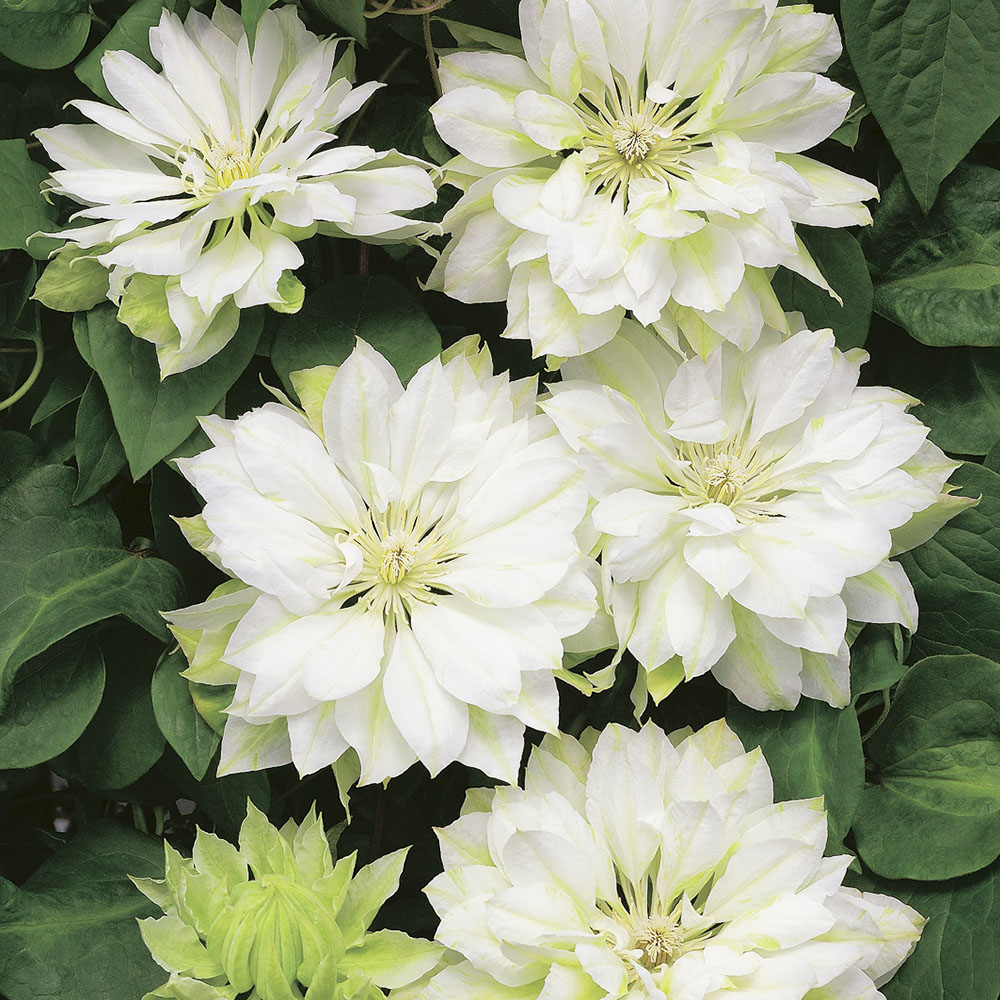 Conţinutul setului: 1 buc Clematită cu înflorire abundentă. Florile pot avea chiar și 15 cm, sunt albe, involte, cu dungi verzi. Înflorirea are loc în două intervale, mai exact din mai până în iunie și din august până în septembrie/octombrie.