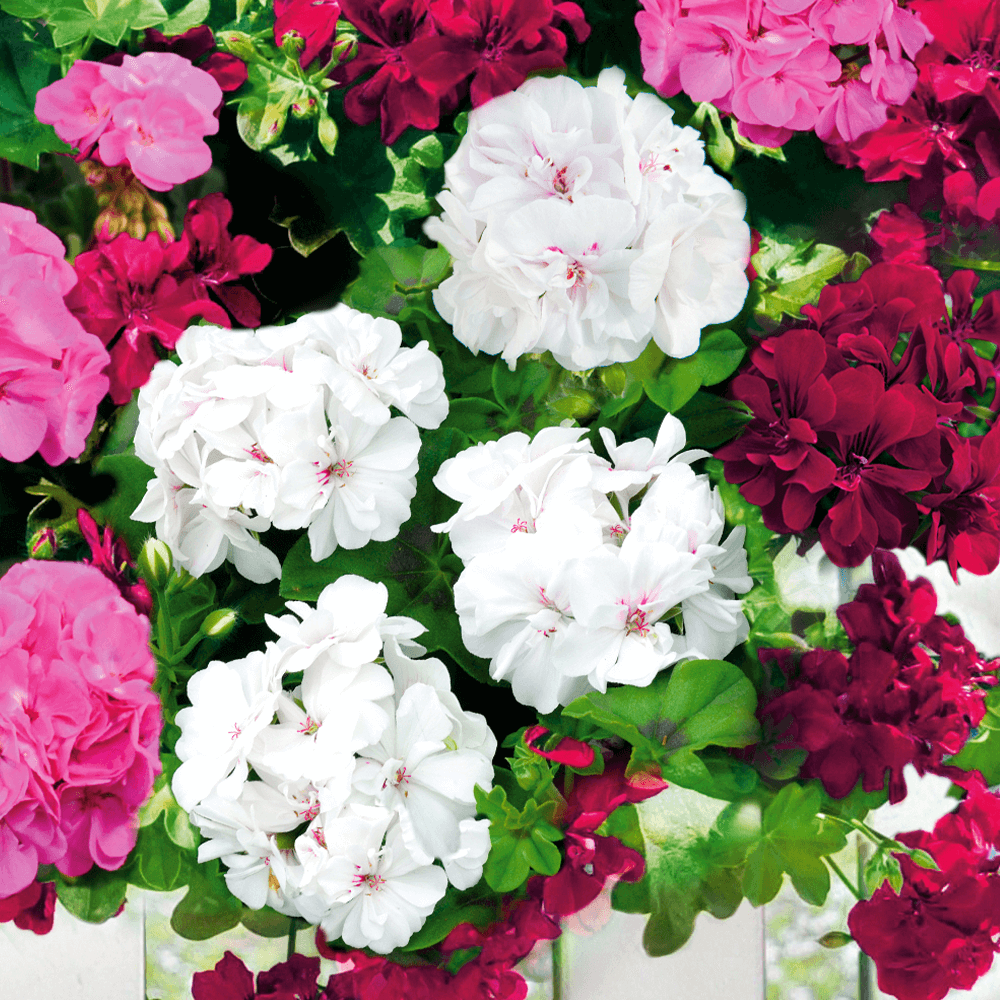 Conţinutul setului: 3 buc Mușcată semi curgătoare cu flori albe, involte. Înflorește toată vara și suportă bine temperaturile ridicate.