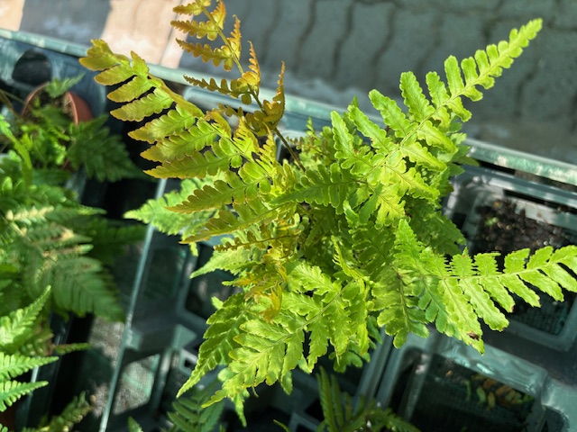 Conţinutul setului: 1 buc Bucuraţi-vă de această strălucire deosebită! Frunzele de ferigă strălucesc în culoarea de cupru - portocaliu. Ideală pentru locurile umbroase şi semi umbroase. Înălțimea plantei la maturitate: 30 cm.