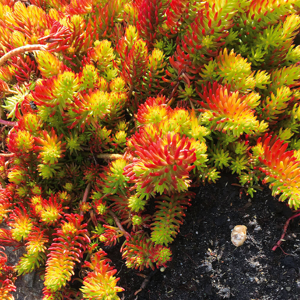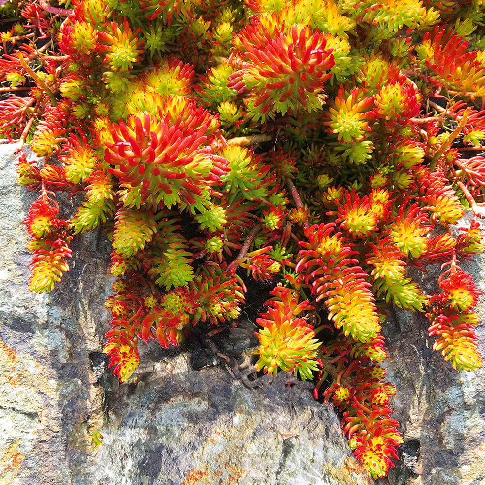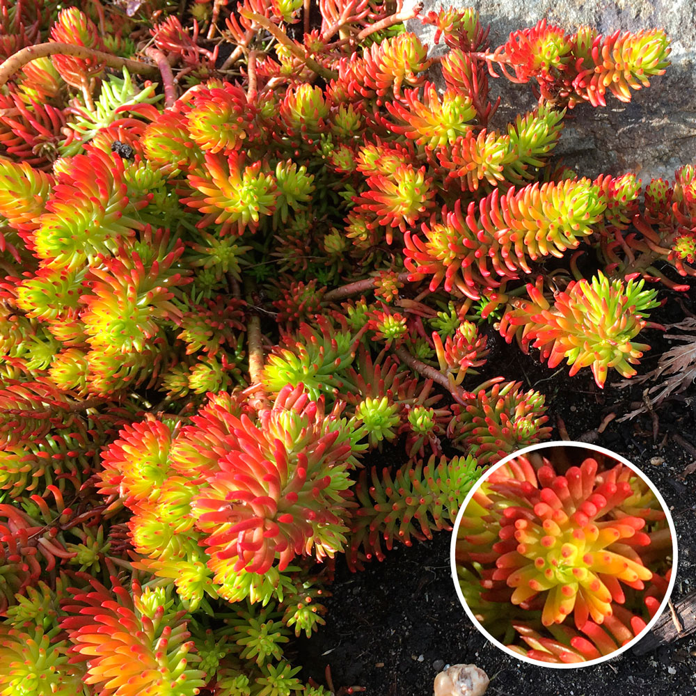 Conţinutul setului: 3 buc Este o plantă suculentă rezistentă la ger, veșnic verde, acoperitoare de sol. Se pretează foarte bine pentru stâncării, pentru decorarea pereților sau plantată la ghiveci. Este preferată de albine și fluturi, nu este predispusă la boli și suportă foarte bine seceta. Decorează prin frunzele verzi gălbui care mai apoi se transformă în portocaliu roșcat.