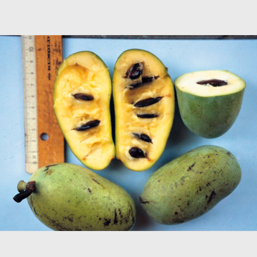 Conţinutul setului: 1 buc Originar din America de Nord. Nu are legătura cu bananele, doar textura fructului este asemănătoare acestora. Toamna frunzişul devine auriu. Acest pom nu are boli sau dăunători cunoscuți care să îl atace și poate să reziste chiar și până la -25 grade Celsius. În aprilie-mai apar florile roşu-brune. Fructul este dulce, foarte consistent, cu coaja verde şi are un gust asemănător cu al bananei, avocado şi mango. Pentru consum proaspăt este indicată tăierea în două a fructului, eliminarea seminţelor mari asemănătoare fasolei din interior iar cu ajutorul lingurei se poate uşor consuma miezul delicios, exotic. Perioada de coacere: septembrie-octombrie, intră pe rod în al 3-4-lea an de la plantare. Autopolenizator.
