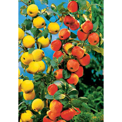 Conţinutul setului: 1 buc Două soiuri de calitate superioară pe acelaşi trunchi, care se polenizează reciproc. Golden: se coace la începutul lunii octombrie, are fructe de culoare galben-auriu. Idared: se coace în luna septembrie, are fructe de culoare roşu-portocaliu. Livrăm plante cu rădăcină împachetată.