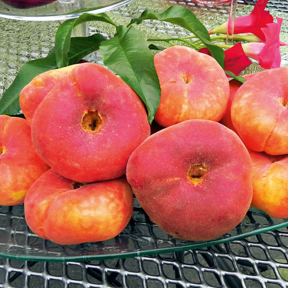Conţinutul setului: 1 buc Piersic plat cu fructe dulci şi zemoase. Florile apar în lunile aprilie şi mai, iar fructele se maturează în luna august. Autopolenizator.