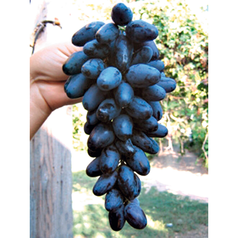 Conţinutul setului: 1 buc Datorită formei speciale a boabelor se mai numește şi viţă de vie-curmal. Are ciorchine mari, semicompacte. Boabele sunt albastre, brumate, au formă alungită, pieliţa subţire. Pulpa pietroasă are gust specific condimentat. Se coace la începutul-mijlocul lunii septembrie. Rezistă bine la micoze şi la ger. Nu este pretenţios față de sol.